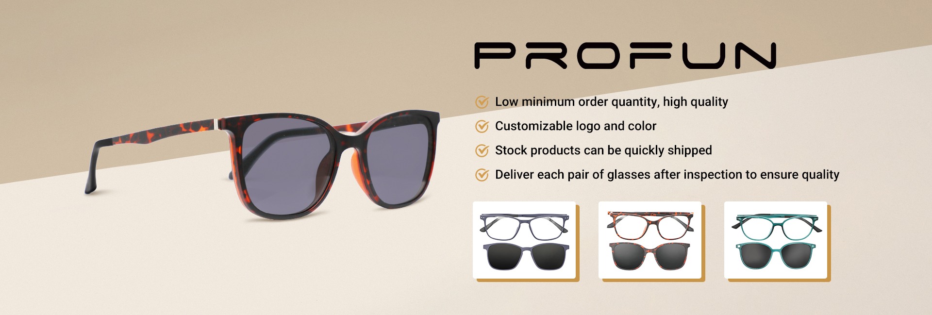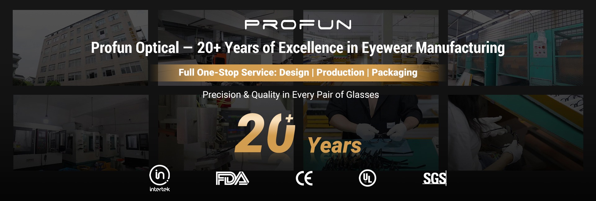 Profun Optical Co., Ltd. is a leading eyewear manufacturer based in southern China, with over 20 years of industry expertise. We provide end-to-end solutions—from design and production to packaging—ensuring high-quality, custom-made glasses that meet precise client requirements. Our client-focused approach emphasizes close collaboration to develop market-driven products, helping brands succeed globally. We specialize in optical frames, reading glasses, sunglasses, lenses, cases, cleaning cloths, sample trays, and decorative stickers, exporting to North America, Europe, Australia, and many other regions worldwide. Trusted by international brands like FG and I need u, we combine innovation with quality. Through strategic U.S. partnerships, we offer FDA compliance support and cost-effective after-sales services, including replacements and repairs. We sincerely welcome your inquiries and look forward to becoming your reliable and long-term strategic partner.